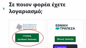 Εμείς θα μπούμε με τους κωδικούς της εφορίας. Πατήστε στο πρώτο κουμπί που λέει: “ΓΓΠΣΨΔ (Κωδικοί Taxisnet)”.