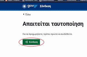 Αφού πατήσετε “Είσοδος στην υπηρεσία”, θα σας εμφανιστεί μια νέα σελίδα που γράφει “Απαιτείται ταυτοποίηση”.